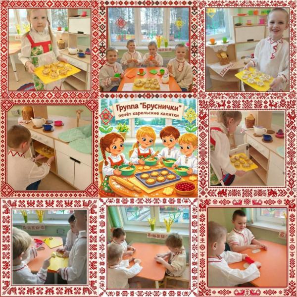 В рамках ежегодного фестиваля "Калевальская мозаика", посвящённого карело-финскому эпосу «Калевала», который проходит в Карелии с 28 февраля по 9 апреля, воспитанники средней группы "Бруснички" решили "испечь"… карельские калитки.