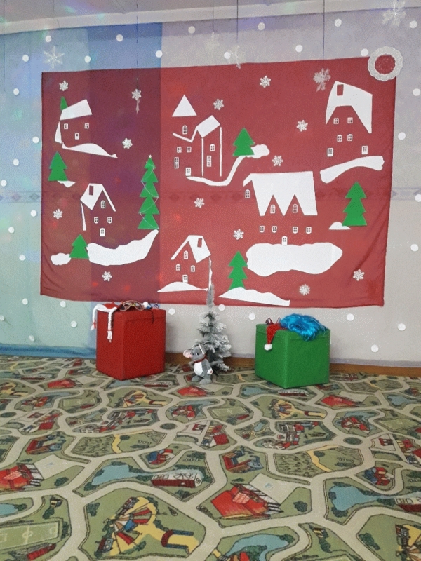 В группе"Капитошка"фотозона была представлена уютной комнатой при мерцающем освещении.Захотелось присесть в кресло-качалку и глядя на светильник ,встречать новогоднее утро!
